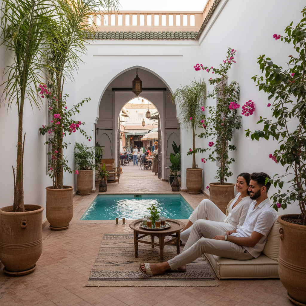 Le meilleur compromis pour ce budget reste un riad bien noté dans la médina, à taille humaine, avec petit-déjeuner inclus.